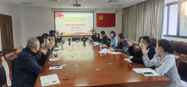 本次学习会主要进行了两个议程:一是开展十九届六中全会精神专题学习,二是对后勤处(含采购与招标中心、网络与信息中心)党支部拟发展对象陈涯强等9名同志进行讨论和表决。