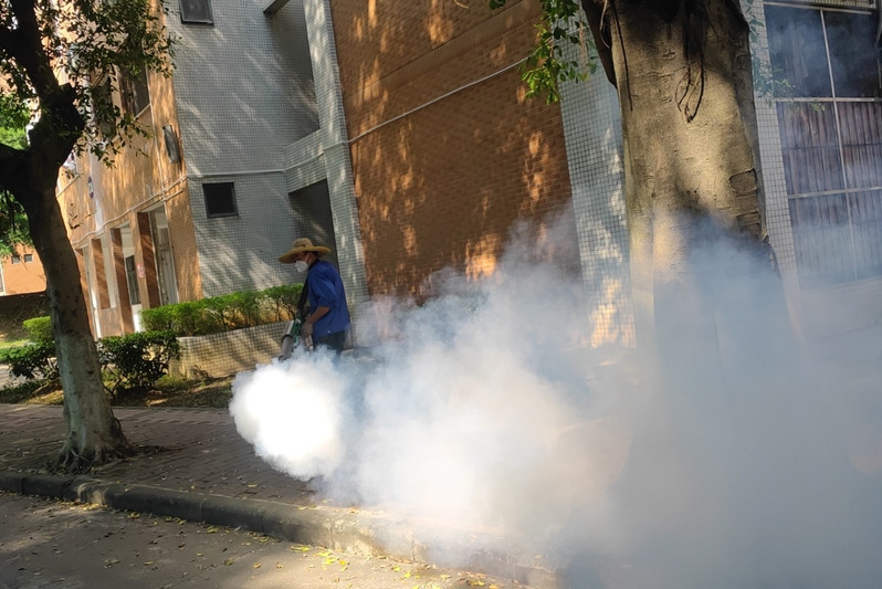 全校外围公共区域进行喷雾灭蚊(物业公司提供)
