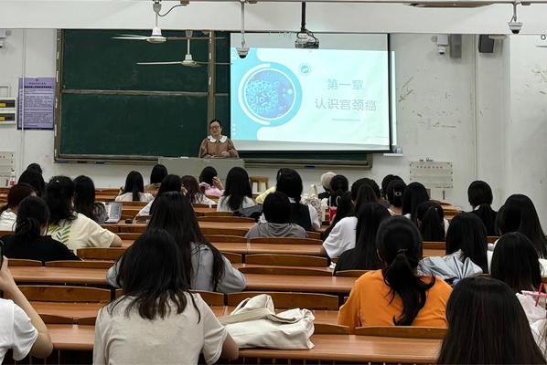 郑晓青用通俗易懂的语言,结合丰富的临床经验,从认识宫颈癌、探索宫颈癌的病因、宫颈癌的一、二、三级预防三个方面展开讲解,特别强调大家要积极行动起来,重视宫颈癌的预防和筛查,关爱自己、关爱身边人,远离宫颈癌。讲座还设置了有奖问答环节,同学们踊跃发言,在收获知识的同时还可以收到一份精美礼品。