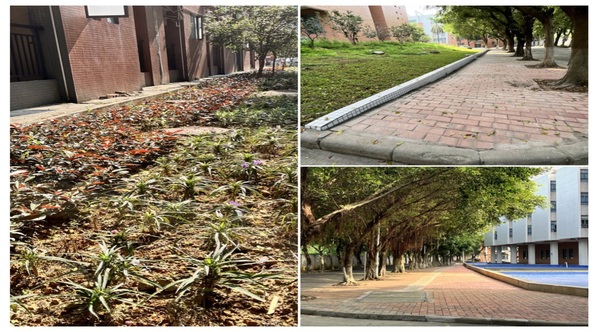 暑假期间对教学楼与学生宿舍楼周边的主干人行道进行了精心修复,解决了地砖起拱问题,确保了行走的安全与舒适。同时,对教学楼周边的绿化带新增了花基,不仅美化了环境,还增强了水土保持功能。学生宿舍楼周边的绿植也全面更新,新引进的植物种类为校园增添了勃勃生机。