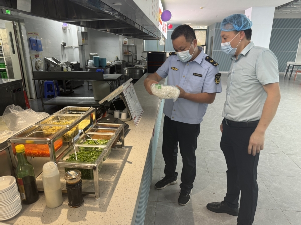 为了提升学校食品安全防控能力,开学初,学校邀请花都区秀全街市场监督管理所到校进行校园食品安全专项检查和指导。监管人员通过“互联网+明厨亮灶”和线下现场检查相结合的方式,查阅学校食品安全管理制度、食堂日常管理台账、从业人员健康状况等资料,详细了解原料采购、加工制作、贮存保管、餐具清洗消毒、食品留样等各个环节,并针对有害生物防治、后厨环境卫生状况、米面油等食材的贮存等方面进行全面检查和指导。同时,针对校园食品安全工作要求,监管人员与食堂管理人员现场沟通,对校园食品安全制度建设、“两个责任”落实等关键环节进行督导,及时消除食品安全隐患,切实守护师生“盘中餐”。