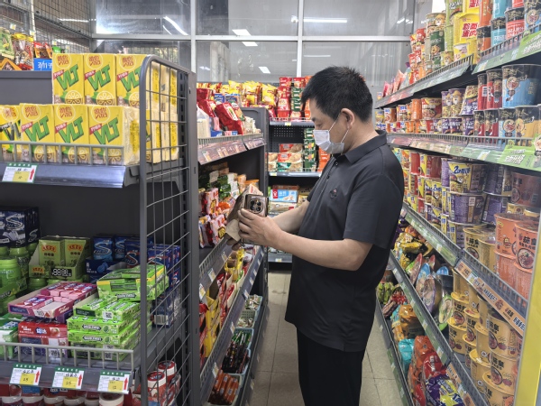 (学校食品安全总监认真检查小卖部食品信息 林雯洁摄)