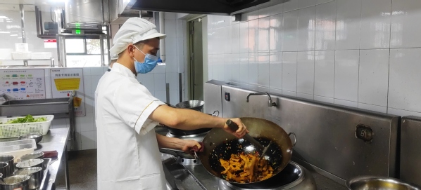 (食堂厨师用心烹制创新菜李荣邦摄)