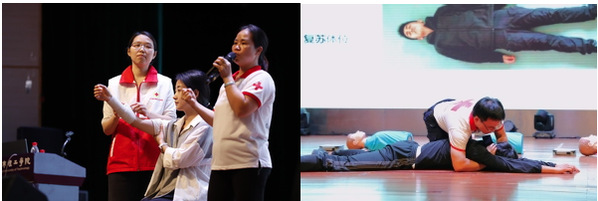 此次救护员培训,是广州市花都区红十字会救护员团队讲师,采用多种方法相结合的教学,包括理论授课、示范操作、现场演练、学员实操等。用通俗易懂的语言,对创伤急救、中毒烧伤、公共安全、防灾减灾、心肺复苏等作了详细的讲解。并现场演示了心肺复苏技能、气道异物梗阻急救的操作步骤和注意事项。