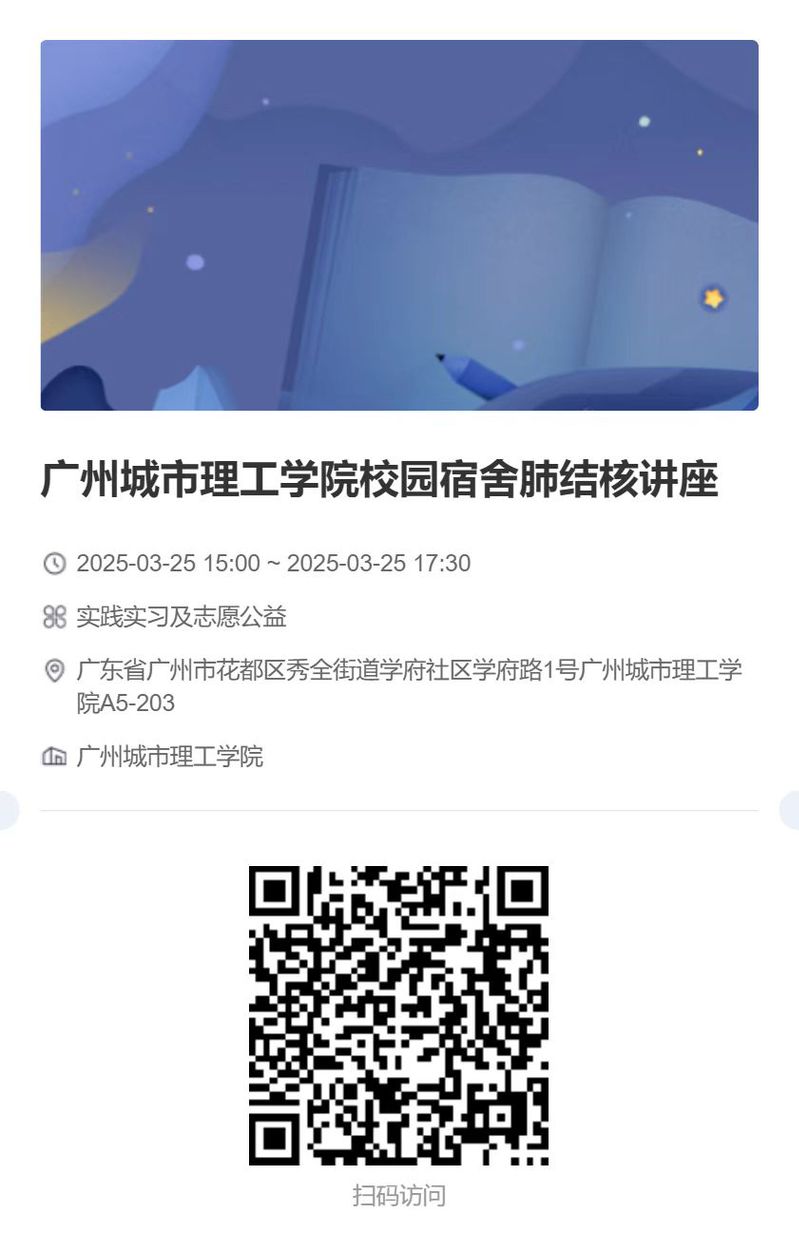 校园是人员密集的场所,结核病防控不容忽视。2025年3月24日是第30个世界结核病防治日,为增强师生防护意识,阻断传播风险,后勤处卫生所、计算机工程学院/大数据学院联合秀全社区卫生服务中心特举办专题讲座,具体安排如下: